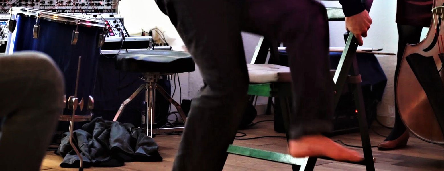 Zwei Musiker und zwei Tänzer mitten im Publikum. Für “Rein damit” wird mithilfe einer Klanginstallation veranschaulicht, wie jedes Individuum überlebt: Wir nehmen wahr, filtern, sortieren, zerstreuen, muten uns selbst zu, was wir stets ablehnen und verurteilen: Mauern – aber das Selbst geht immer weiter und fügt selbst wieder zusammen, ist wandelbar, rollt Teppiche aus, biegt darauf ab und lässt sich inspirieren zum nächsten Schritt – auch mal woanders hin.