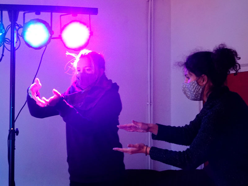 Während der Probenzeit gibt es Zeit zum gemeinsam Entwickeln in der Gruppe und für Einzelcoaching – du kannst deine ganz individuellen Fragen stellen an einen der Dozierenden und entscheidest, was in der Performance präsentiert wird.
